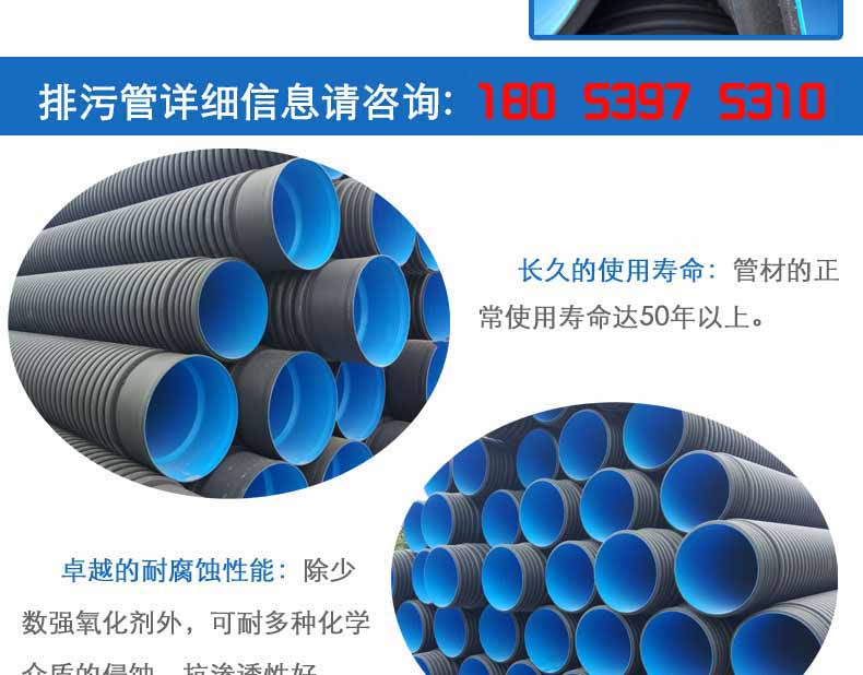 ⑦、良好的可繞性:管道柔性好,可適度彎曲,抗不均勻沉降效果好。